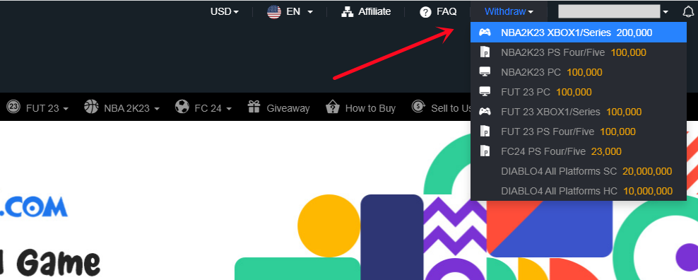 1. Please login to your member account before placing an order (please register if you don't have one). Click the "NBA 2K23 MT Coins" button.